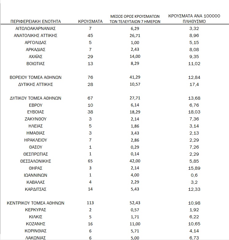 Δείτε αναλυτικά τον χάρτη της διασποράς των κρουσμάτων κορωνοϊού ανά περιφέρεια: