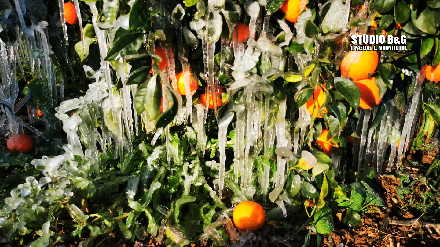 Πολύ χαμηλές θερμοκρασίες καταγράφηκαν τη νύχτα της Τετάρτης και τις πρωινές ώρες της Πέμπτης 28 Ιανουαρίου στον κάμπο της Αργολίδας.