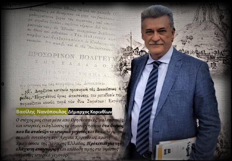 Β.Νανόπουλος: Στόχος μας είναι να αναδείξουμε το ιστορικό γεγονός «Κόρινθος: 1η Πρωτεύουσα της νεότερης Ελλάδας»