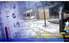 Κλειστές θα παραμείνουν οι σχολικές μονάδες όλων των βαθμίδων του Δήμου Κορινθίων (νηπιαγωγεία, δημοτικά, γυμνάσια, λύκεια και παιδικοί σταθμοί) λόγω των έκτακτων καιρικών φαινομένων που επικρατούν και στην περιοχή μας, των χαμηλών θερμοκρασιών που καταγράφονται και των υγειονομικών πρωτοκόλλων αντιμετώπισης της πανδημίας, την Δευτέρα 15 Φεβρουαρίου και την Τρίτη 16 Φεβρουαρίου. 🚸Σύμφωνα με το υπουργείο […]