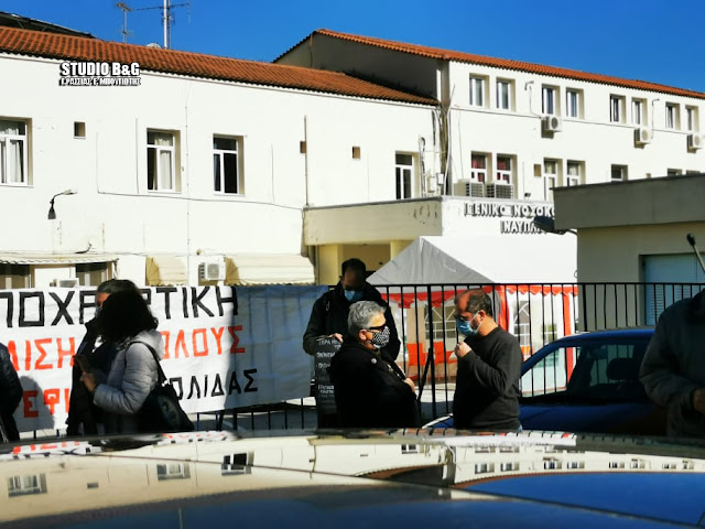Συγκέντρωση διαμαρτυρίας πραγματοποιήθηκε έξω από το Νοσοκομείο Ναυπλίου το πρωί της Τρίτης 23 Φεβρουαρίου στα πλαίσια των κινητοποιήσεων που πραγματοποιεί η Ομοσπονδία Ενώσεων Νοσοκομειακών Γιατρών Ελλάδας (ΟΕΝΓΕ).