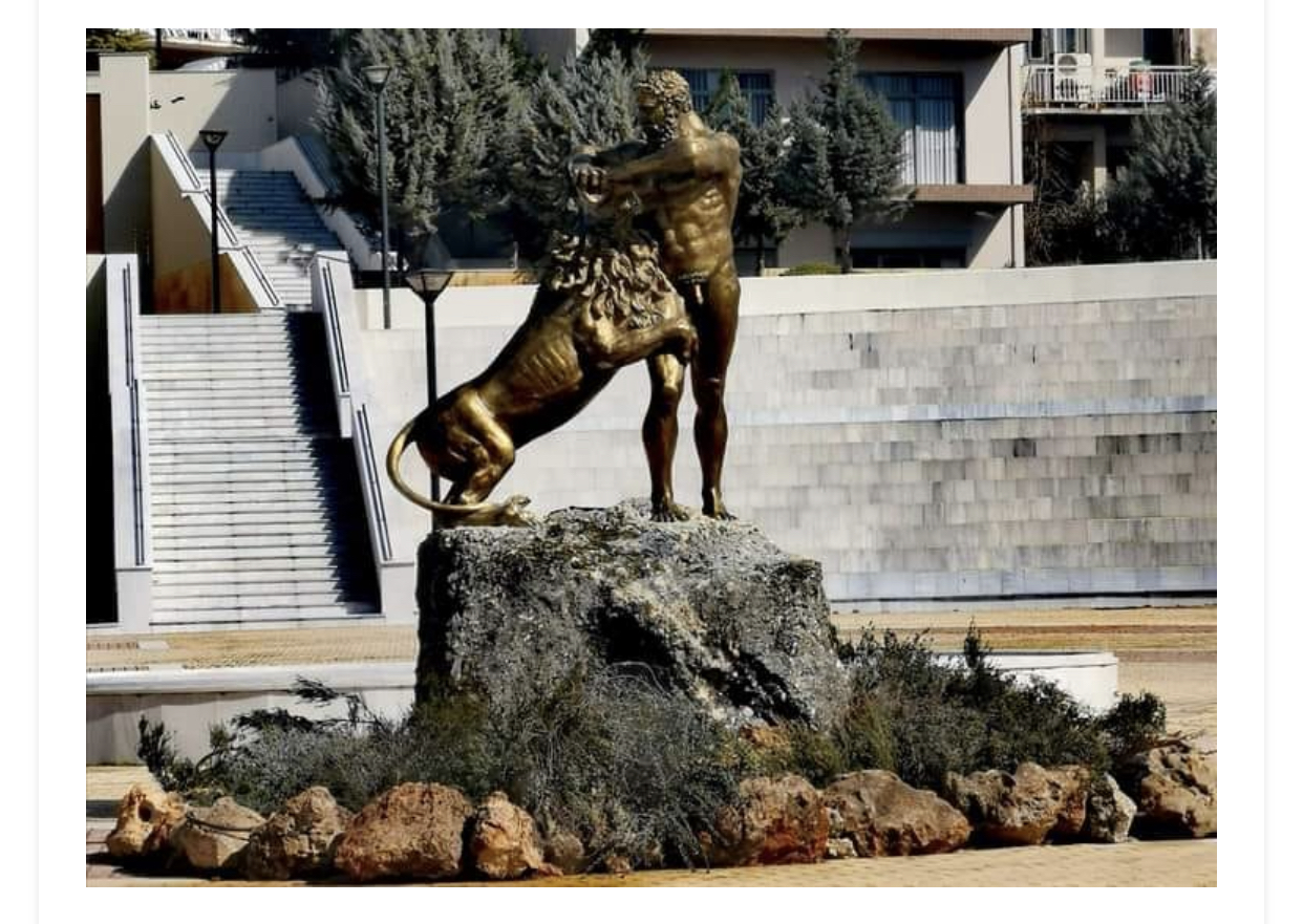 Ο Ηρακλής και το λιοντάρι της Νεμέας στην πλατεία Δημαρχείου -ΦΩΤΟ