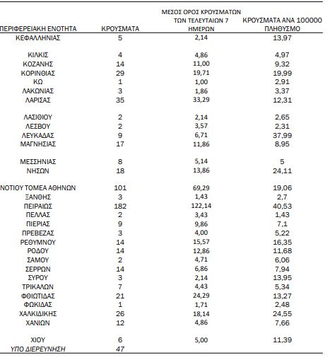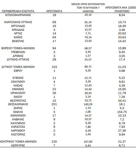 Οι περιοχές με διψήφιο αριθμό κρουσμάτων είναι: