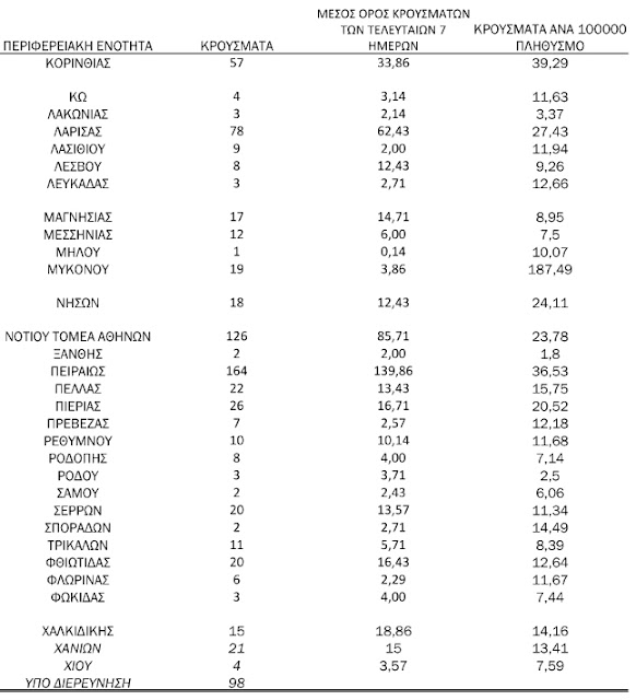 Οι νέοι θάνατοι ασθενών με COVID-19 είναι 49, ενώ από την έναρξη της επιδημίας έχουν καταγραφεί συνολικά 6.986 θάνατοι. Το 95.8% είχε υποκείμενο νόσημα ή/και ηλικία 70 ετών και άνω.