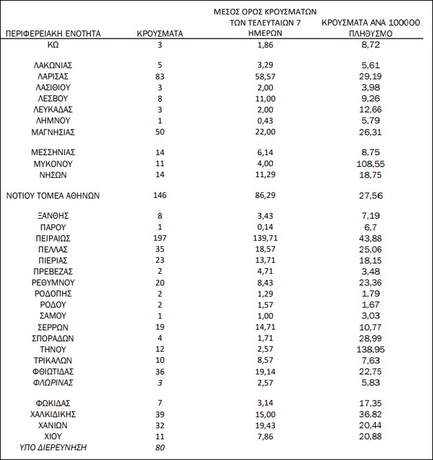 Σε κάθε περιφέρεια εντοπίστηκαν ως εξής: