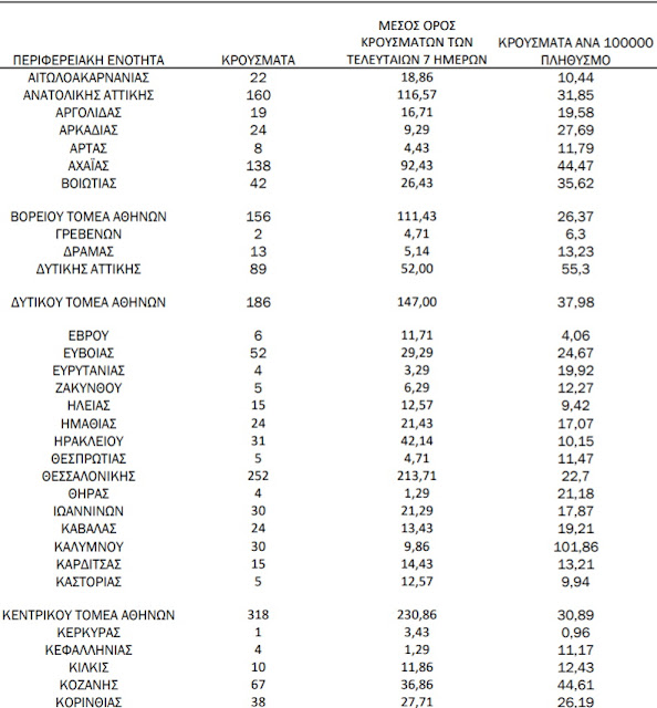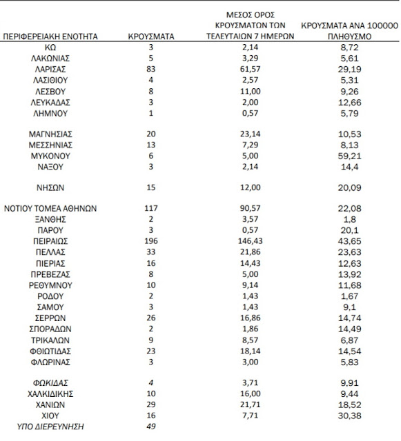Σύμφωνα με τα στοιχεία που δημοσιοποίησε ο ΕΟΔΥ, το απόγευμα του Σαββάτου 20/3, από τα συνολικά 2.535 κρούσματα στην Αττική εντοπίστηκαν τα 1.237, στη Θεσσαλονίκη 252 και την Αχαΐα 138.