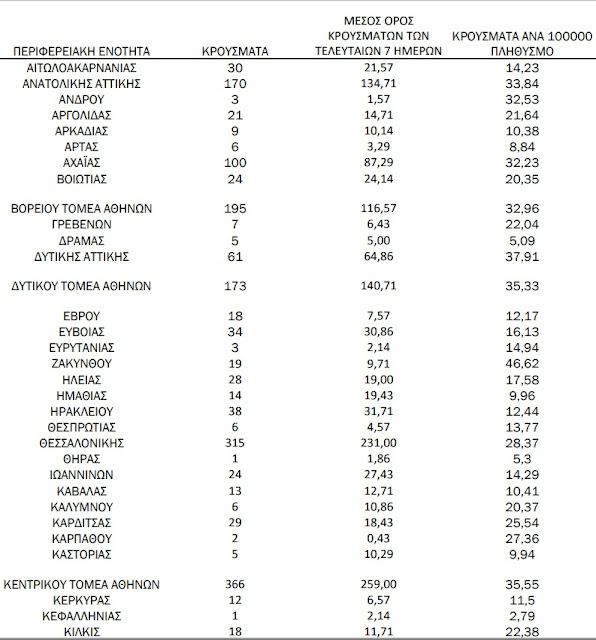 Δείτε τα αναλυτικά στοιχεία του ΕΟΔΥ με την κατανομή των κρουσμάτων: