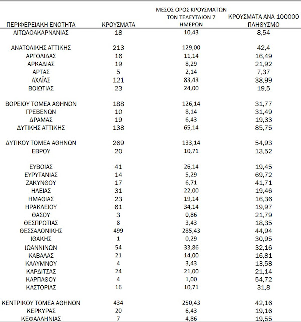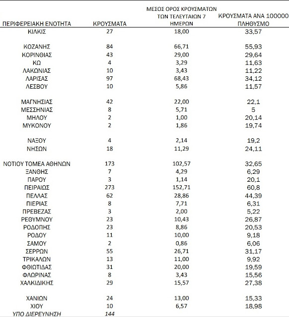 Δείτε την κατανομή των κρουσμάτων σύμφωνα με τα στοιχεία του ΕΟΔΥ:
