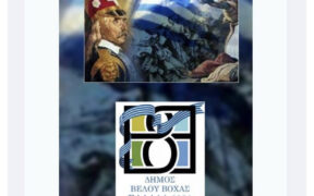 Εορτασμός Εθνικής Επετείου 25ης Μαρτίου 1821 στο Δήμο Βέλου Βόχας Φέτος ο εορτασμός της 25ης Μαρτίου θα πραγματοποιηθεί χωρίς κόσμο και κατάθεση στεφάνων από Συλλόγους και φορείς στο πλαίσιο των μέτρων για την αντιμετώπιση της εξάπλωσης του Covid-19. Η Δοξολογία στην έδρα του Δήμου στο Ζευγολατιό θα τελεστεί ανήμερα της Επετείου στις 9.30π.μ. στον Ιερό […]