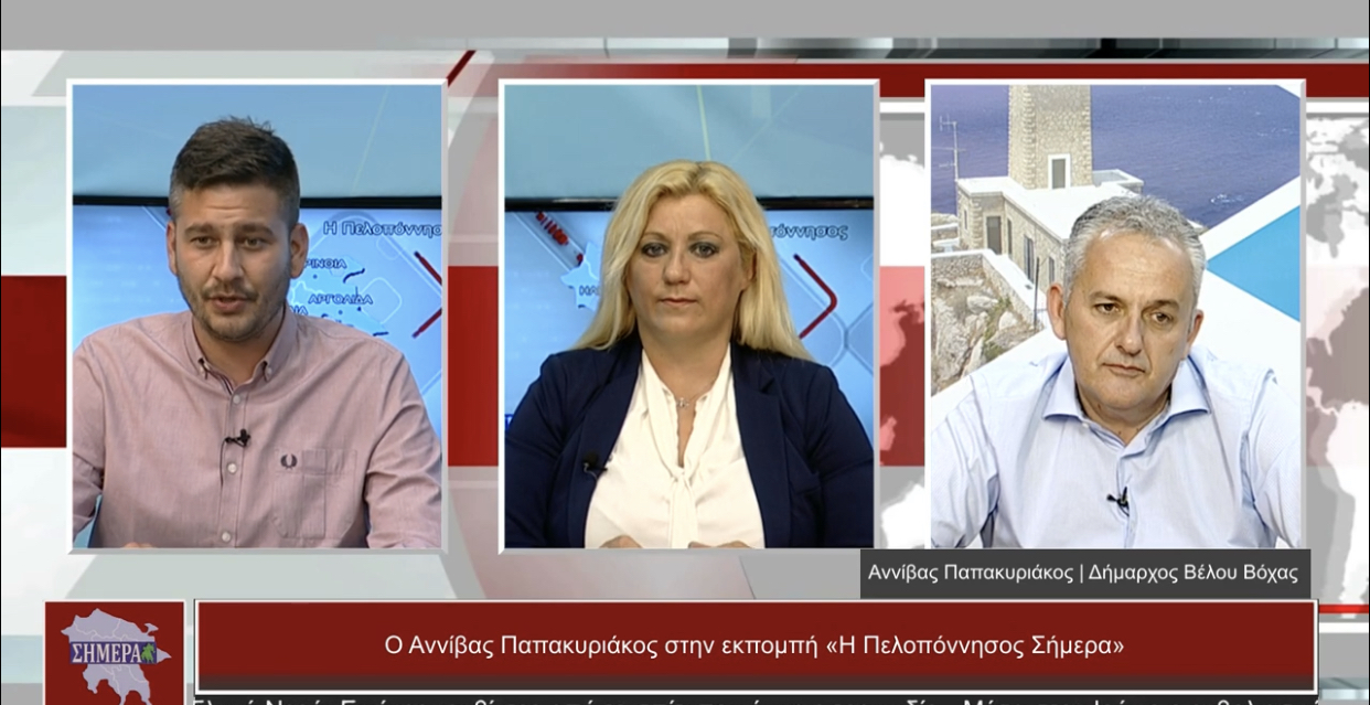 Συνέντευξη εφ’όλης της ύλης παραχώρησε ο Δήμαρχος Βελου Βόχας Αννίβας Παπακυριάκος στην εκπομπη η Πελοπόννησος ΣΗΜΕΡΑ.