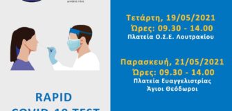 Συνεχίζονται τα ΔΩΡΕΑΝ Rapid Test σε σημεία του Δήμου Λουτρακίου – Περαχώρας – Αγίων Θεοδώρων