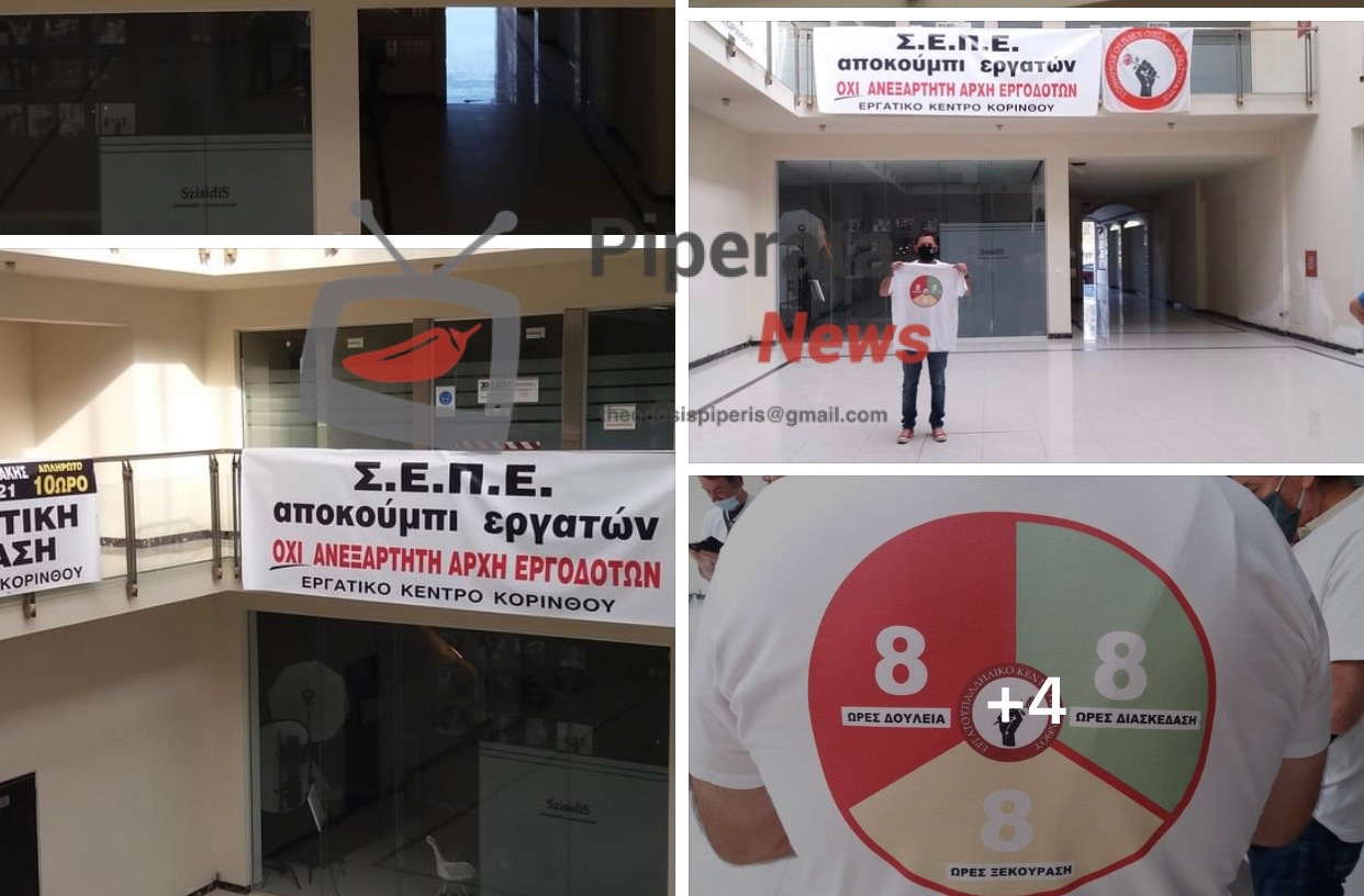 Εργατικό κέντρο Κορινθίας : Εδώ συμβολική κατάληψη από το Δ.Σ. του εργατικού κέντρου Κορίνθου και τις διοικήσεις των Σωματείων που υπάγονται σε αυτό στα γραφεία του Σώματος Επιθεώρησης Εργασίας νομού Κορινθίας με το σύνθημα Σ.Ε.Π.Ε αποκούμπι εργατών και όχι Ανεξάρτητη Αρχή εργοδοτών. Συνάδελφοι Σας καλούμε στην πανελλαδική απεργία πού έχει προκηρυχθεί στις 10 ιουνίου δεν περισσεύει κανένας όλοι στους δρόμους δεν θα σταματήσουν Αν δεν τους σταματήσουμε