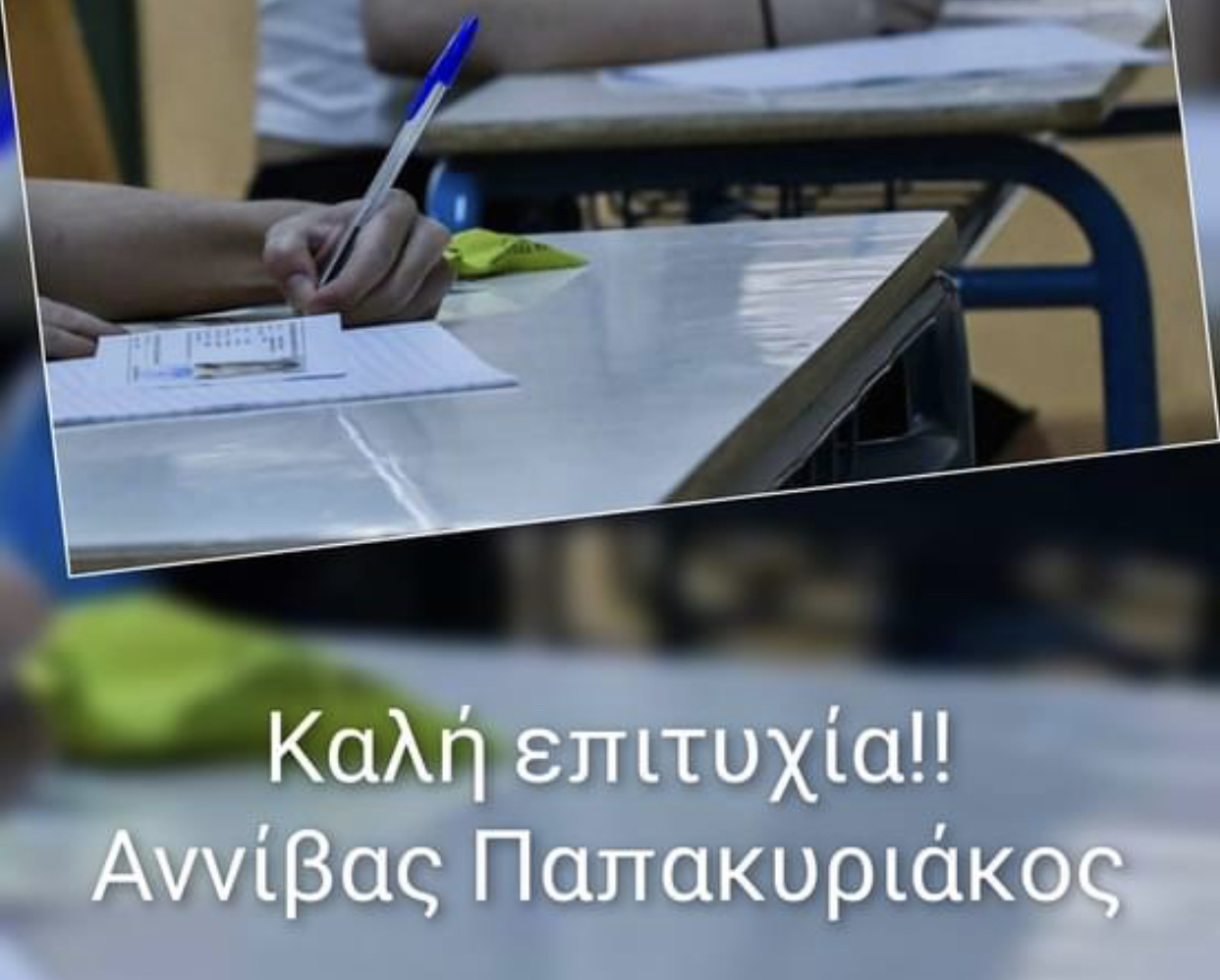 Kαλή επιτυχία θα ήθελα να ευχηθώ σε όλα τα παιδιά μας που ξεκινούν αύριο την προσπάθεια για την εισαγωγή τους στην τριτοβάθμια εκπαίδευση.