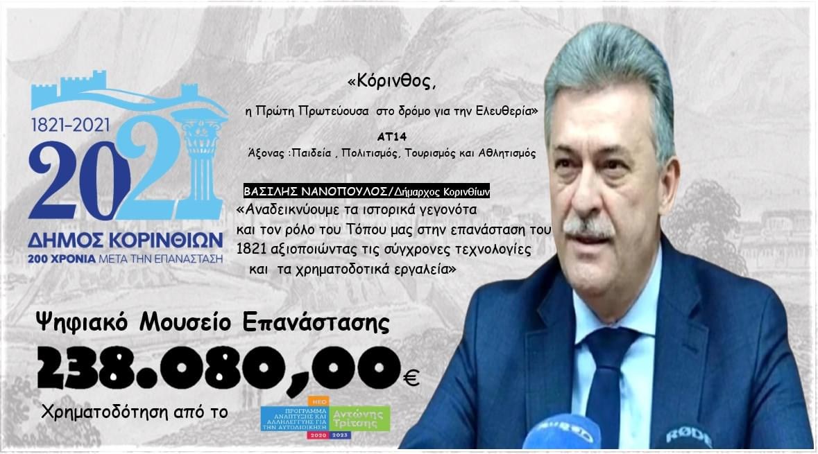 🗜«Δημιουργούμε το πρώτο ψηφιακό μουσείο στο δήμο Κορινθίων προκειμένου να αναδείξουμε τα ιστορικά γεγονότα της επανάστασης και τον σπουδαίο ρόλο που διαδραμάτισε ο τόπος μας σε αυτά. Η Αρχαία Κόρινθος ήταν η