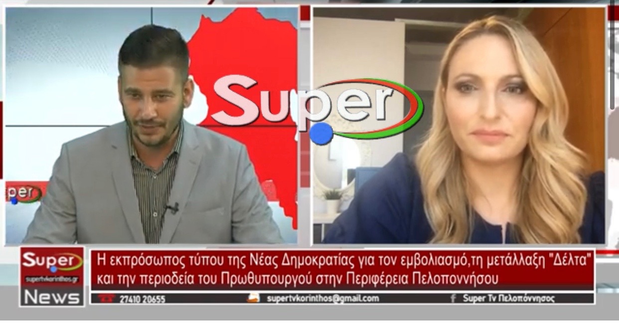 Η εκπρόσωπος τύπου Νέας Δημοκρατίας Έλενα Σώκου αναφέρθηκε στους εμβολισμούς,την μετάλλαξη «δέλτα» τα κίνητρα που έδωσε η κυβέρνηση στους νέους καθώς και στην επίσκεψη του Πρωθυπουργού στην Περιφέρεια Πελοποννήσου μέσα από το κεντρικό δελτίο ειδήσεων του Super tv.