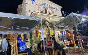 Με κατάνυξη λαμπρότητα και με τη συμμετοχή πιστών στο Λουτράκι τιμάται η Παναγία Γιάτρισσα στο Λουτράκι.