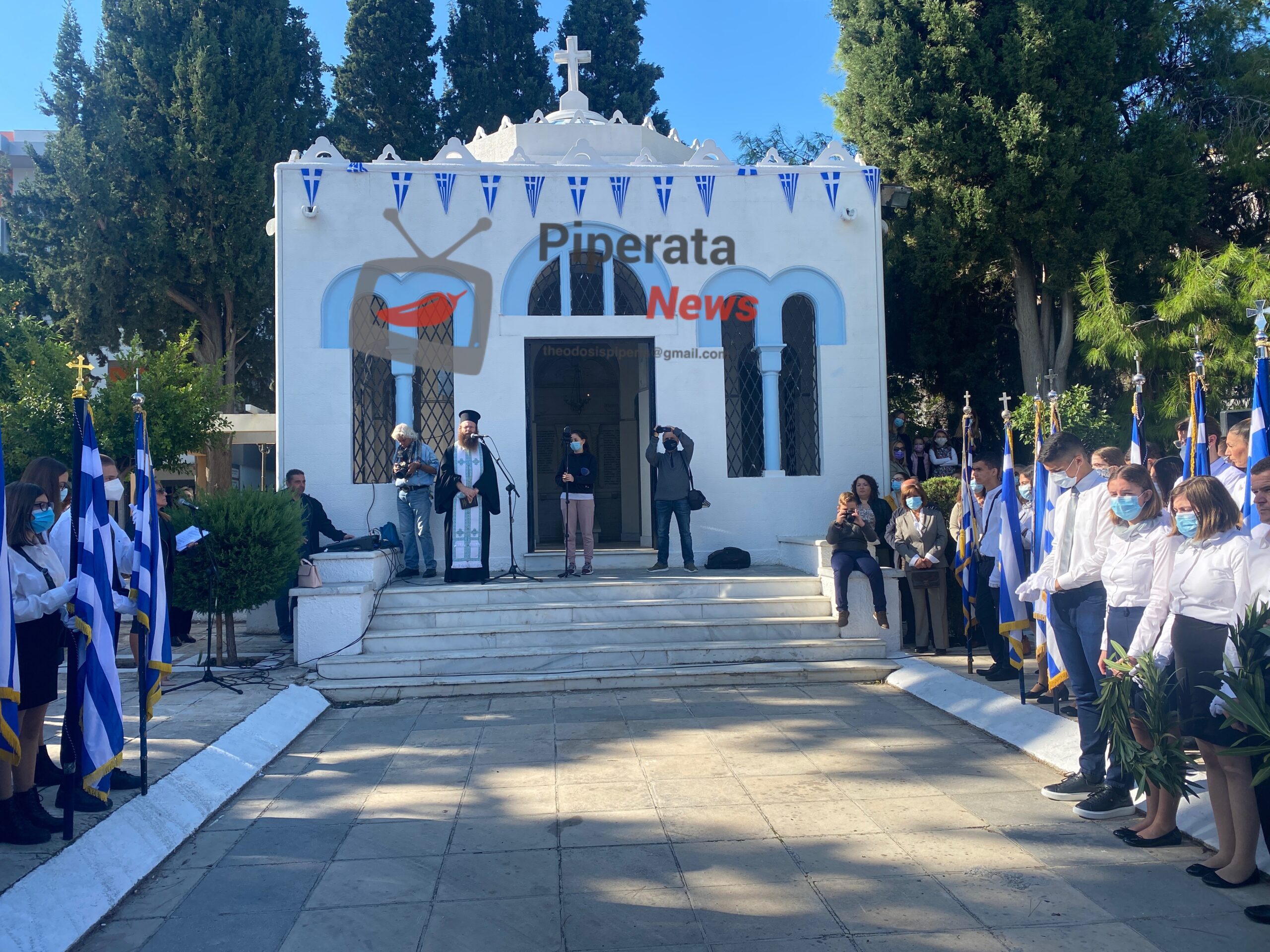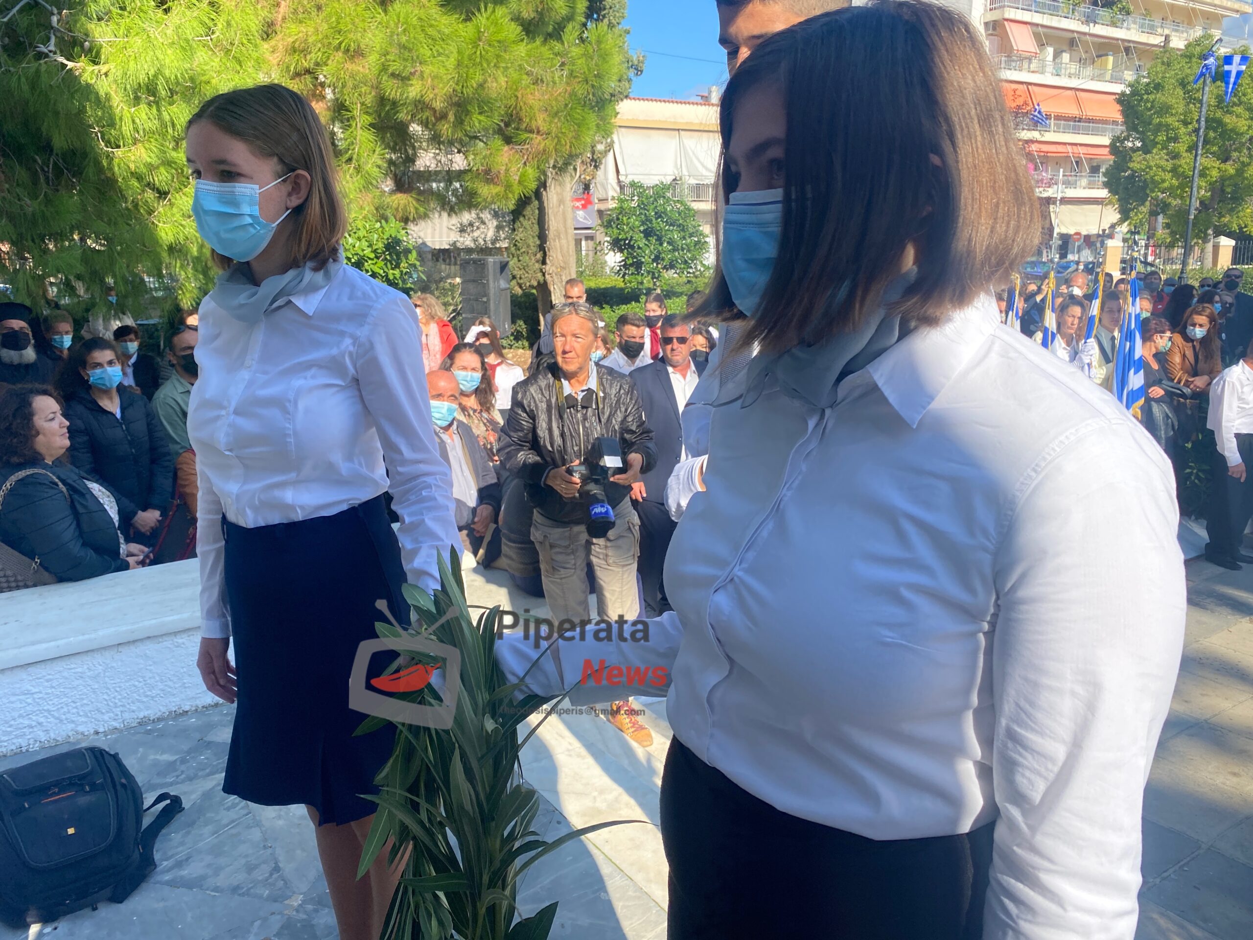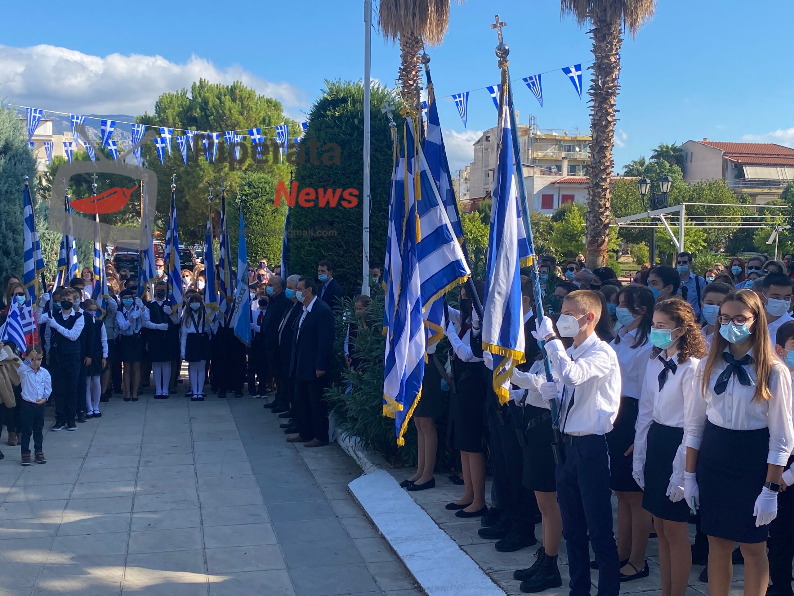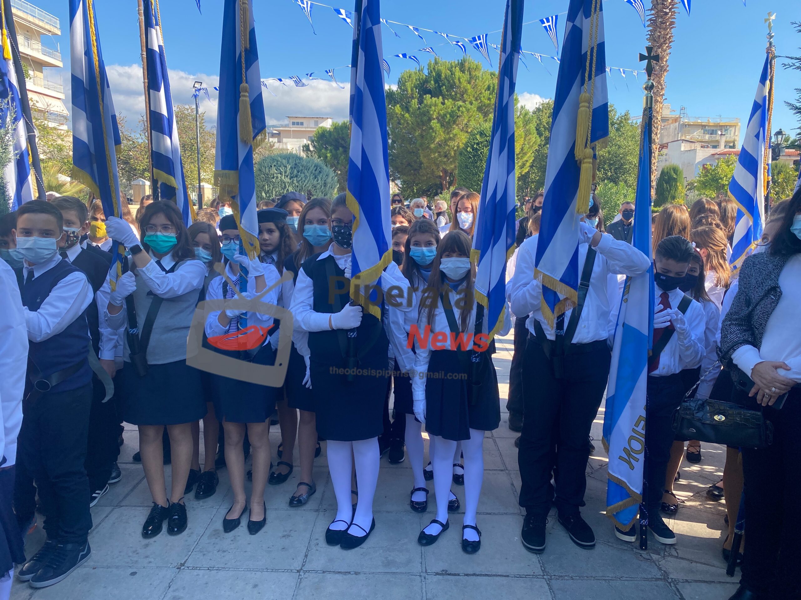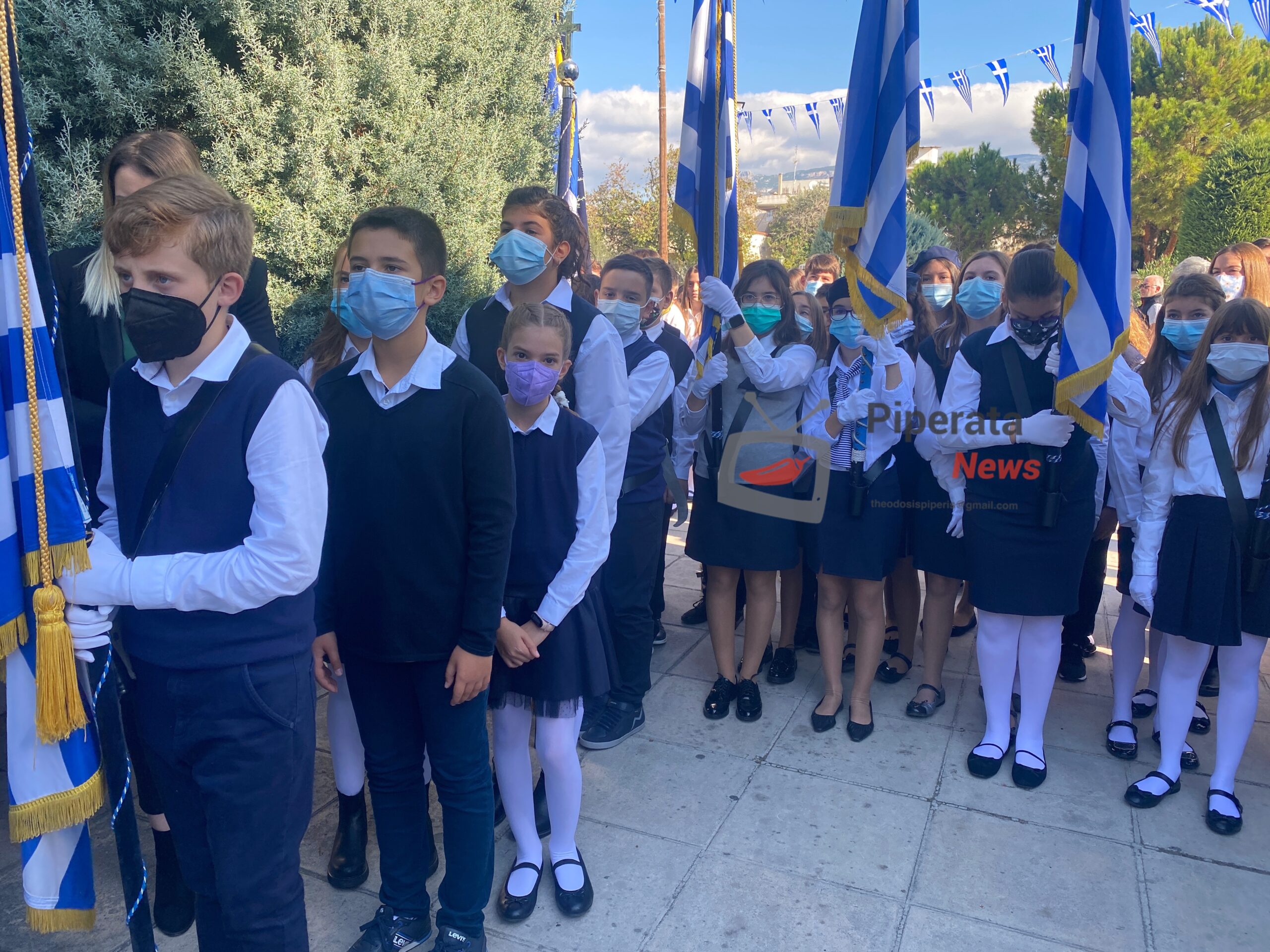από αντιπροσωπείες μαθητών από τα σχολεία της Κορίνθου μαζι με τους δασκάλους και τους καθηγητές τους.