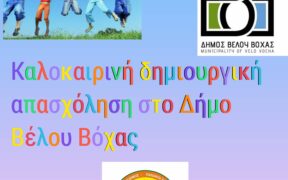 Όπως κάθε χρόνο, έτσι και φέτος, ο Δήμος Βέλου Βόχας και το ΝΠΔΔ ΄΄ΑΝΕΛΙΞΗ΄΄ θα υλοποιήσουν το Πρόγραμμα Δημιουργικής Απασχόλησης κατά τους θερινούς μήνες στο κλειστό γυμναστήριο ΄΄Γ. Τριαντάφυλλος΄΄ στο Βραχάτι και στο κλειστό γυμναστήριο του Βέλου. Το πρόγραμμα θα ξεκινήσει τη Δευτέρα 20 Ιουνίου και θα διαρκέσει έως και την Παρασκευή 12 Αυγούστου […]