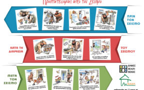 Μαθαίνω για τον σεισμό. Μέσα στο σπίτι Στερεώστε γερά στους τοίχους τα ράφια και τις βιβλιοθήκες. Απομακρύνετε από τις πόρτες τα ψηλά έπιπλα που μπορούν να ανατραπούν και να εμποδίσουν την έξοδο. Βιδώστε καλά στους τοίχους το θερμοσίφωνα και τις δεξαμενές καυσίμων και νερού. Τοποθετείστε τα βαριά αντικείμενα στα χαμηλότερα ράφια. Απομακρύνετε τα βαριά αντικείμενα […]