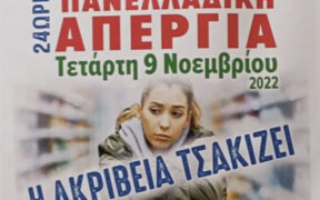 ΤΕΤΑΡΤΗ 9 ΝΟΕΜΒΡΙΟΥ 2022 24ωρη ΠΑΝΕΛΛΑΔΙΚΗ ΑΠΕΡΓΙΑ Συναδέλφισσες, Συνάδελφοι, Τώρα είναι η ώρα να ξεσηκωθούμε! Τώρα όλοι έχουμε ανάγκη τον αγώνα και ο αγώνας μας έχει όλους ανάγκη! Για να προστατεύσουμε τη ζωή μας! Η κατάσταση με τις τιμές βασικών προϊόντων είναι ανεξέλεγκτη. Οι οικογένειές μας δέχονται επιδρομή στο εισόδημά τους από τις διψήφιες αυξήσεις […]