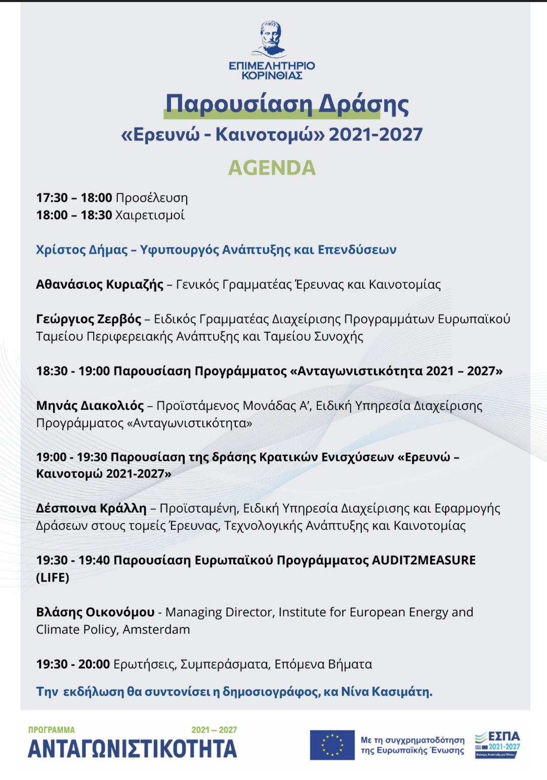 Η agenda της εκδήλωσης: