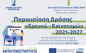 Το Επιμελητήριο Κορινθίας ανακοινώνει την επερχόμενη εκδήλωσή του, που επιδιώκει να συγκεντρώσει εκπροσώπους από την ακαδημαϊκή και επιχειρηματική κοινότητα, να συζητήσουν και να διερευνήσουν ευκαιρίες για έρευνα που μπορεί να οδηγήσει στην οικονομική ανάπτυξη και καινοτομία. Η εκδήλωση θα πραγματοποιηθεί τη Δευτέρα 23 Ιανουαρίου 2023 & ώρα 18:00μμ και θα επικεντρωθεί στη νέα […]