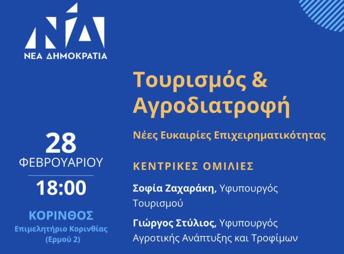 o Τομέας Τουρισμού & ο Τομέας Αγροτικής Ανάπτυξης και Τροφίμων της Νέας Δημοκρατίας