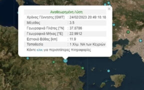 Σεισμός κλίμακας 3,5 βαθμών σημειώθηκε στις Κεχριές Κορίνθου. Η σεισμική δόνηση είχε επίκεντρο 1 χλμ. νοτιοανατολικά των Κεχριών και σημειώθηκε στις 22:49 το βράδυ της Παρασκευής 24/2.