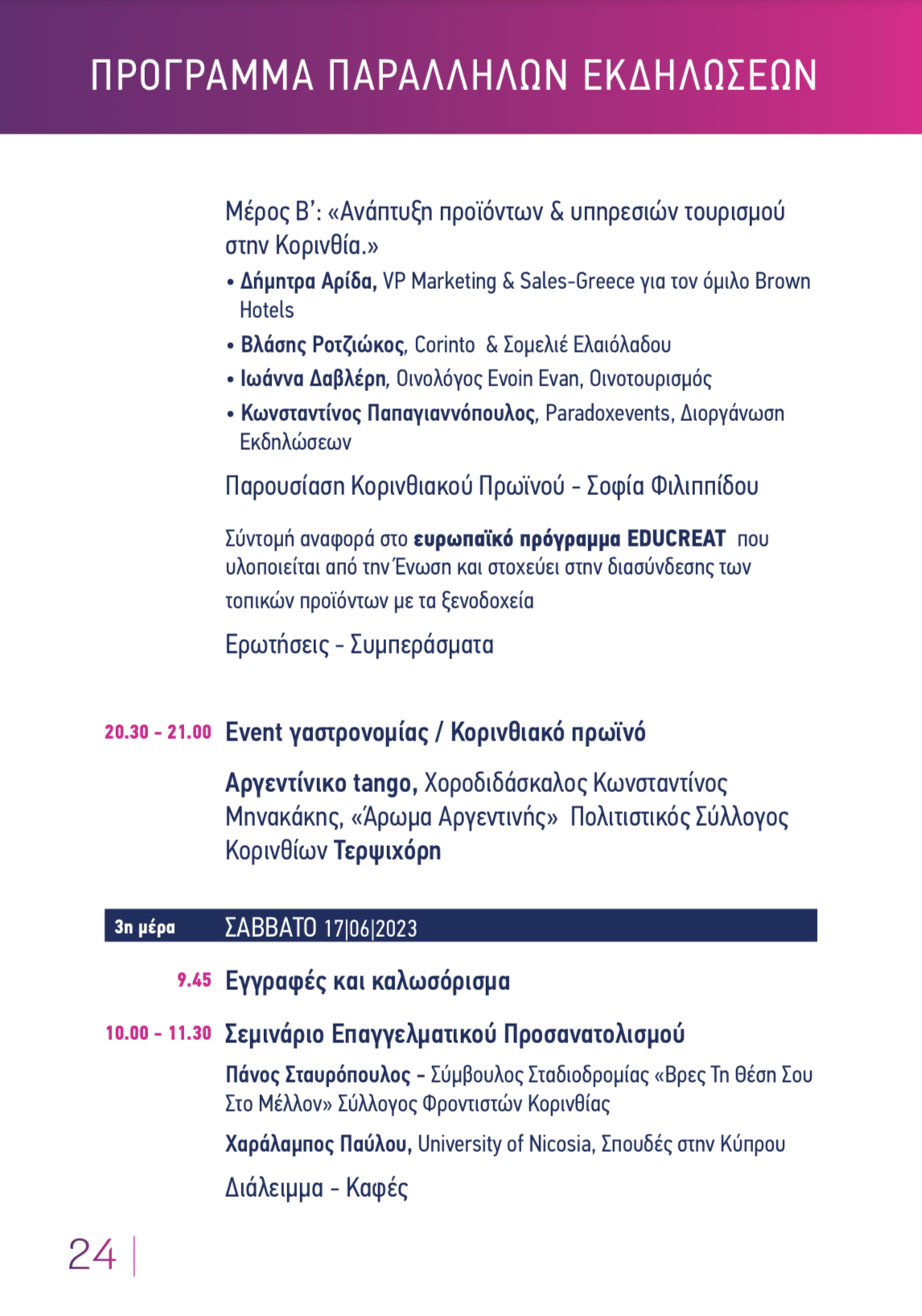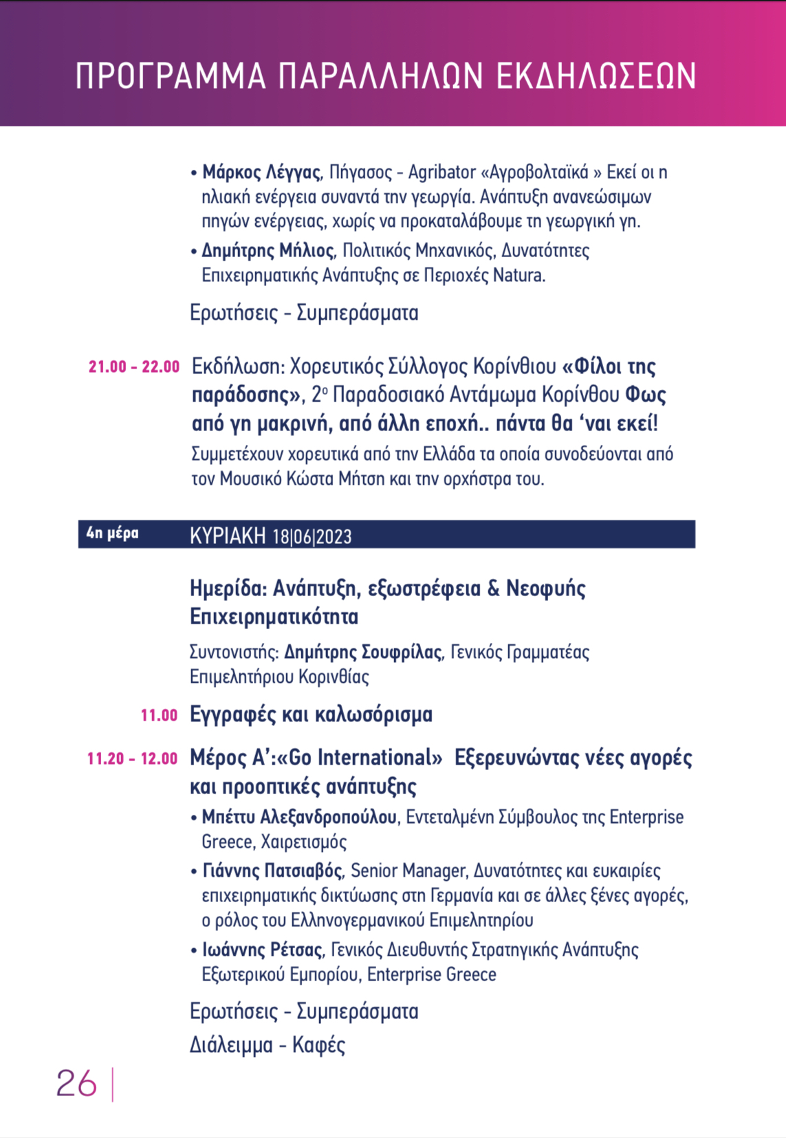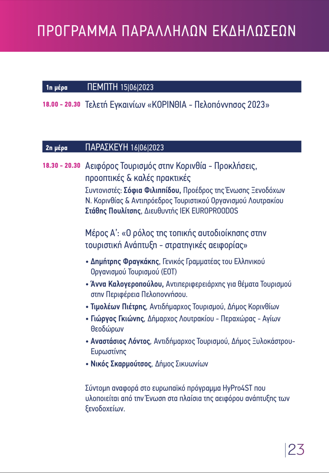 Κορινθία TΟ ΠΡΟΓΡΑΜΜΑ ΠΑΡΑΛΛΗΛΩΝ ΕΚΔΗΛΩΣΕΩΝ ΤΗΣ ΕΚΘΕΣΗΣ ΤΟΥ ΕΠΙΜΕΛΗΤΗΡΙΟΥ ΚΟΡΙΝΘΙΑ ΠΕΛΟΠΟΝΝΗΣΟΣ 2023 theodosis 14 Ιουνίου 2023 Share