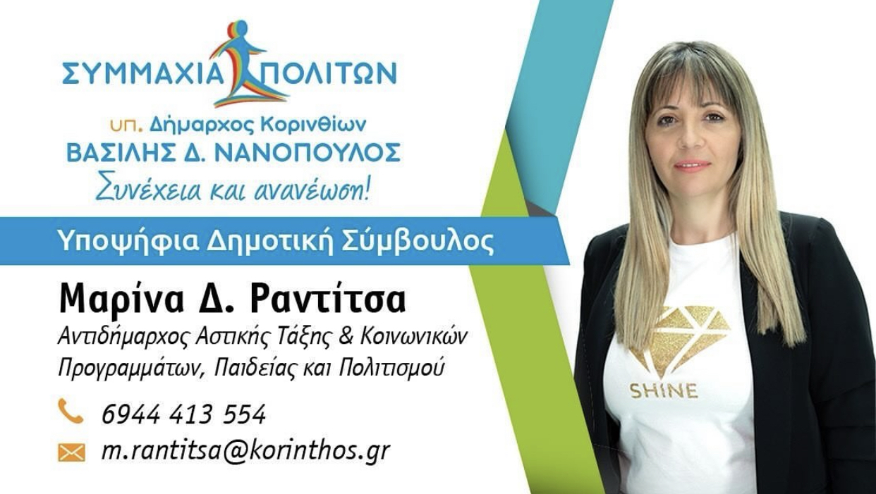 Μαρίνα Ραντίτσα : Γεμάτη ορεξη και αγάπη για το δήμο μας,με μια δυναμική πορεια απο το 2014 στα κοινα,συνεχίζω δίπλα στον Βασίλη Νανοπουλο γιατί τα λόγια γίνονται πράξεις και το όραμα έγινε πραγματικότητα!Με οδηγό την «Συμμαχία Πολιτών» το όραμα αυτό θα ολοκληρωθεί