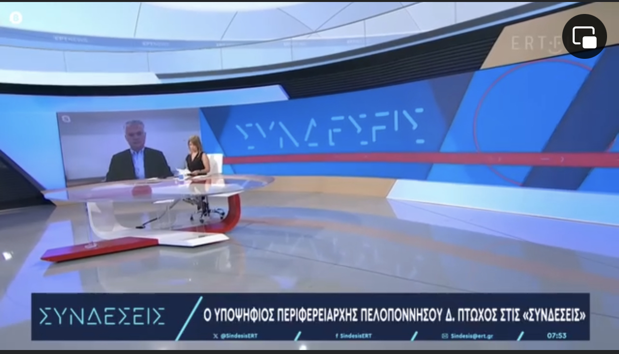 «Αυτό που σίγουρα μπορούμε να κάνουμε είναι να αυξήσουμε στο ψηλότερο επίπεδο την ετοιμότητα του κρατικού μηχανισμού, κάθε επίπεδου της τοπικής αυτοδιοίκησης και του κράτους, προκειμένου να μπορούμε να ανταποκριθούμε με τον καλύτερο δυνατό τρόπο στα έντονα καιρικά φαινόμενα» δήλωσε στην ΕΡΤ1 ο Δημήτρης Πτωχός. Στη συνέντευξή του στην εκπομπή «Συνδέσεις» με τη Νίνα Κασιμάτη, ο υποψήφιος Περιφερειάρχης Πελοποννήσου παρουσίασε το πρόγραμμα της παράταξής του «Η Πελοπόννησος Μπροστά», θέτοντας ως βασική προτεραιότητά του την ανάπτυξη «και κυρίως την προσέλκυση νέων επενδύσεων και την ενίσχυση των υφιστάμενων».