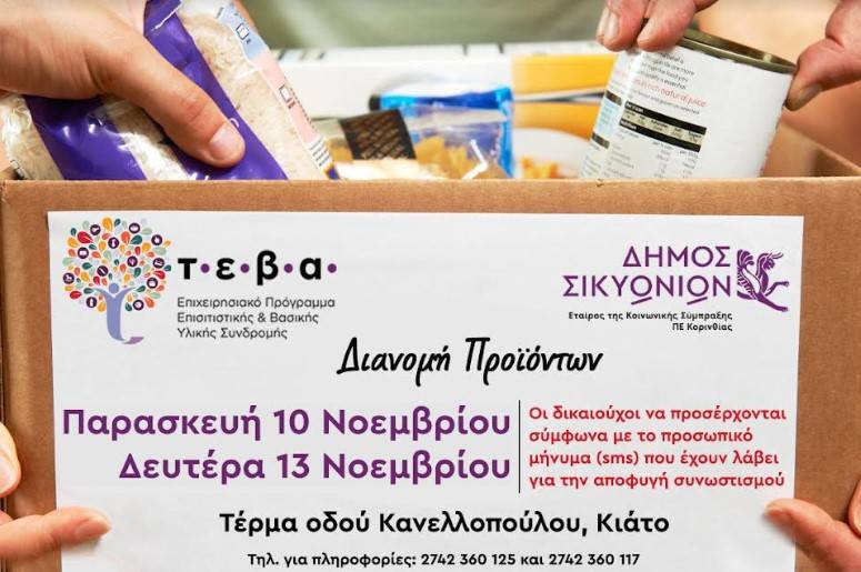 Δήμος Σικυωνίων: Νέα διανομή δωρεάν προϊόντων από το πρόγραμμα ΤΕΒΑ
