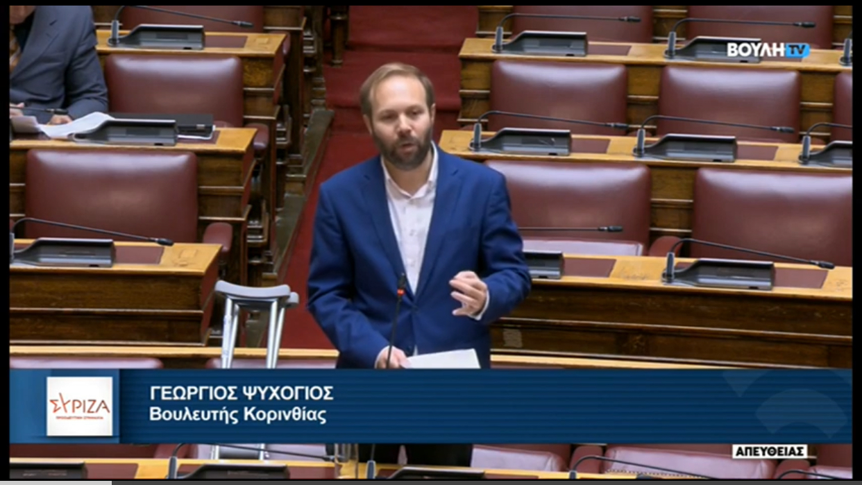 Ο βουλευτής Κορινθίας του ΣΥΡΙΖΑ-ΠΣ, Γιώργος Ψυχογιός, τοποθετήθηκε κατά τη συνεδρίαση συζήτησης του Προϋπολογισμού στην ολομέλεια της Βουλής.