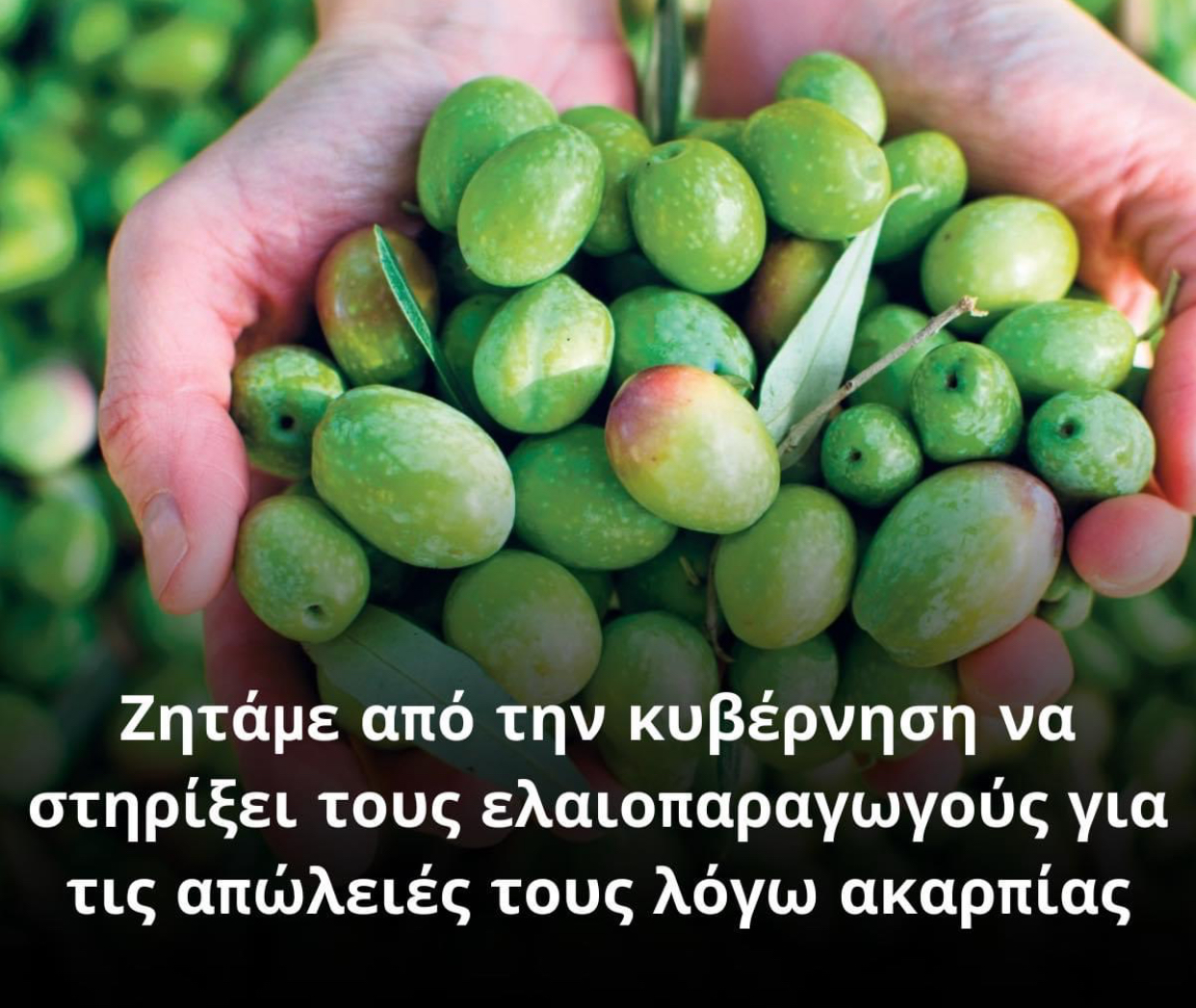 Επειδή, οι ελαιοπαραγωγοί μας δεν θα μπορέσουν να αντέξουν τα βάρη που επωμίζονται από την υφιστάμενη κατάσταση με την ακαρπία της ελιάς.