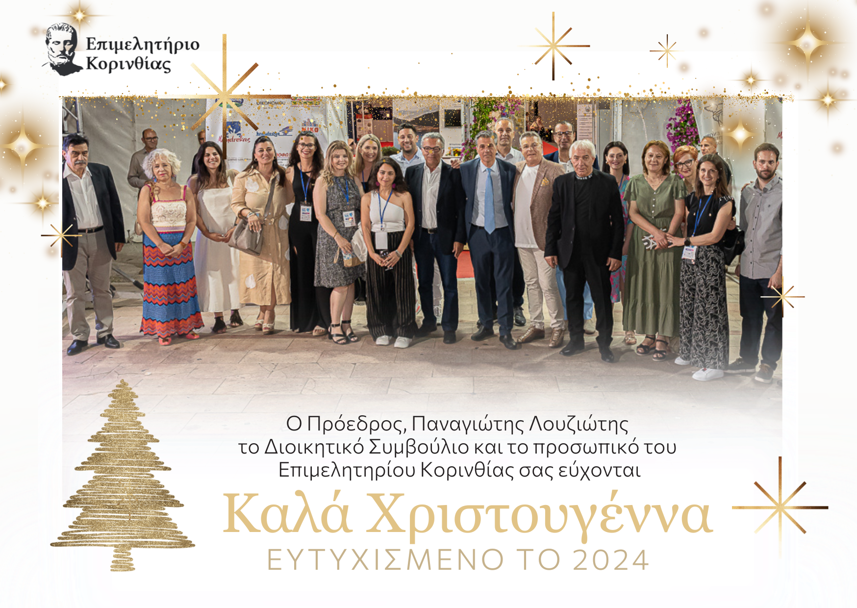 Επικαιρότητα Κορινθία Χριστουγεννιάτικες Ευχές από το Επιμελητήριο Κορινθίας theodosis 22 Δεκεμβρίου 2023 Share Ο Πρόεδρος, Παναγιώτης Λουζιώτης, το Διοικητικό Συμβούλιο και το Προσωπικό του Επιμελητηρίου Κορινθίας σας εύχονται Καλά Χριστούγεννα & Ευτυχισμένο το 2024