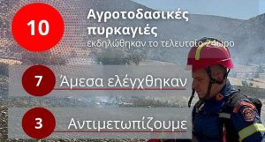 Επικαιρότητα 10 αγροτοδασικές πυρκαγιές εκδηλώθηκαν το τελευταίο 24ωρο theodosis 11 Μαΐου 2024 Share 🚒1️⃣0️⃣αγροτοδασικές #πυρκαγιές εκδηλώθηκαν το τελευταίο 24ωρο. 📎https://bit.ly/3JYTfes