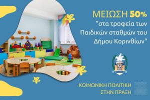 Η νέα Δημοτική Αρχή πιστή στις δεσμεύσεις του Δημάρχου Νίκου Σταυρέλη συνεχίζει με μια ακόμα σημαντική μείωση κατά 50% στα τροφεία που θα πληρώνουν οι οικογένειες με παιδιά στους Παιδικούς Σταθμούς του Δήμου μας.