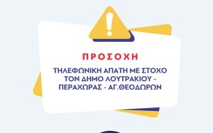 Προσοχή! Τηλεφωνική απάτη με στόχο τον Δήμο Λουτρακίου – Περαχώρας – Αγίων Θεοδώρων