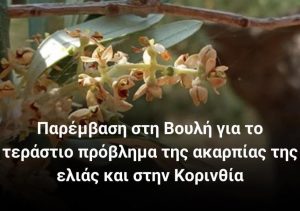 Παρέμβαση Ψυχογιού στη Βουλή για το τεράστιο πρόβλημα της ακαρπίας της ελιάς και στην Κορινθία