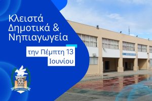 Για το λόγο αυτό όλα τα δημόσια Νηπιαγωγεία και τα Δημοτικά δεν θα λειτουργήσουν την Πέμπτη13/6».