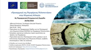 Ενημερωτική Ημερίδα: «Προσαρμογή της Περιφέρειας Πελοποννήσου στην Κλιματική Αλλαγή»