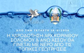 Σας ενημερώνουμε ότι λόγω της παρατεταμένης ζέστης, της αυξημένης κατανάλωσης νερού και της μείωσης της παροχής των πηγών της Στυμφαλίας, από την Τετάρτη 14-8-2024, η υδροδότηση των οικισμών Αρχαίας Κορίνθου, Σολομού και Άνω Άσσου, θα γίνεται με νερό από τις τοπικές γεωτρήσεις. Το νερό θεωρείται μη πόσιμο, αλλά κατάλληλο για οποιαδήποτε άλλη οικιακή χρήση. Για την ΔΕΥΑ Κορίνθου Δημήτρης […]