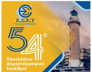 Η Ένωση Συντακτών Επαρχιακού Τύπου θα πραγματοποιήσει το 54ο Πανελλήνιο Δημοσιογραφικό Συνέδριό της με τίτλο «Η Δυναμική της Δημοσιογραφίας στην Περιφέρεια»,  11 – 13 Οκτωβρίου2024, στην αίθουσα συνεδρίων του Επιμελητηρίου Έβρου στην Αλεξανδρούπολη.