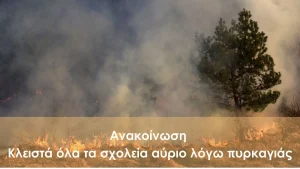 Ανακοίνωση – Κλειστά όλα τα σχολεία αύριο λόγω πυρκαγιάς