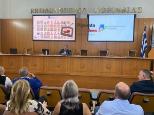 Στην συνέχεια της εκδήλωσης ο Πρόεδρος Παναγιώτης Λουζιώτης κάλεσε στο βήμα τον Αντιπρόεδρο του Επιμελητηρίου Κορινθίας και νυν Αντιπεριφερειάρχης Επιχειρηματικότητας και Ανάπτυξης κ. Σωτήρη Μουρίκη. Ο κ. Μουρίκης για ακόμη μια φορά δήλωσε ότι θα είναι δίπλα στις προσπάθειες των επιχειρηματιών την επόμενη ημέρα, ώστε να μαζί να πετύχουμε την ανάπτυξη και ευημερία των επιχειρήσεων.
