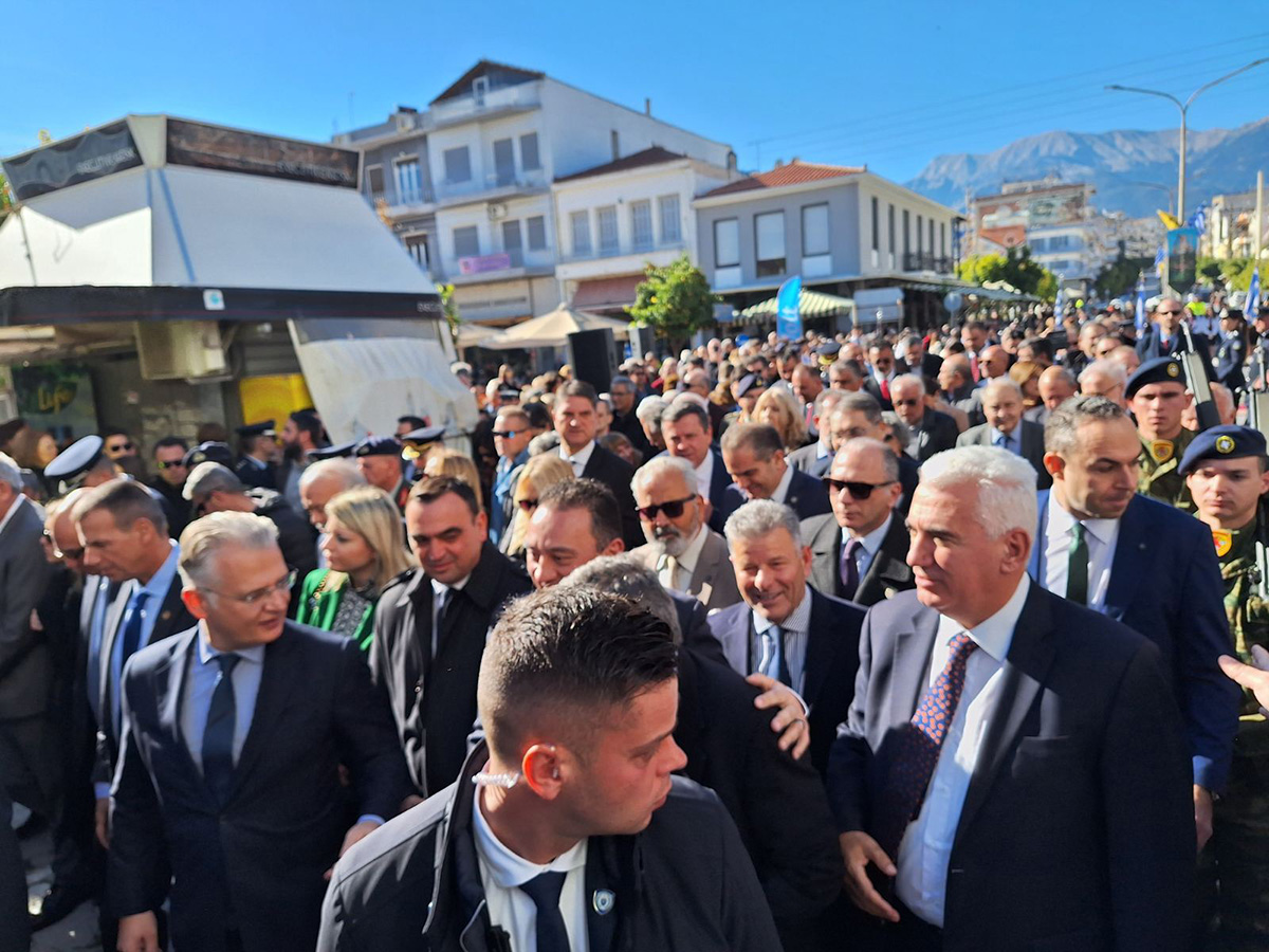 Κατά την υποδοχή του, ο Περιφερειάρχης Πελοποννήσου Δημήτρης Πτωχός, σε μια συγκινητική προσφώνηση, τόνισε τη σπουδαιότητα της παρουσίας του Πατριάρχη στη γη των Παλαιολόγων και των Σπαρτιατών. «Η Σπάρτη βιώνει σήμερα την Άνοιξη, με τις γλυκόφθογγες καμπάνες να σημαίνουν ένα διαφορετικό Πάσχα», ανέφερε χαρακτηριστικά, περιγράφοντας τη μοναδικότητα της στιγμής. Υπογράμμισε επίσης την ευλάβεια και την αγάπη των Λακώνων για την Εκκλησία και την Πατρίδα, βλέποντας στο πρόσωπο του Πατριάρχη τον πνευματικό ηγέτη που φέρνει το «βυζαντινό μύρο» στη Σπάρτη.