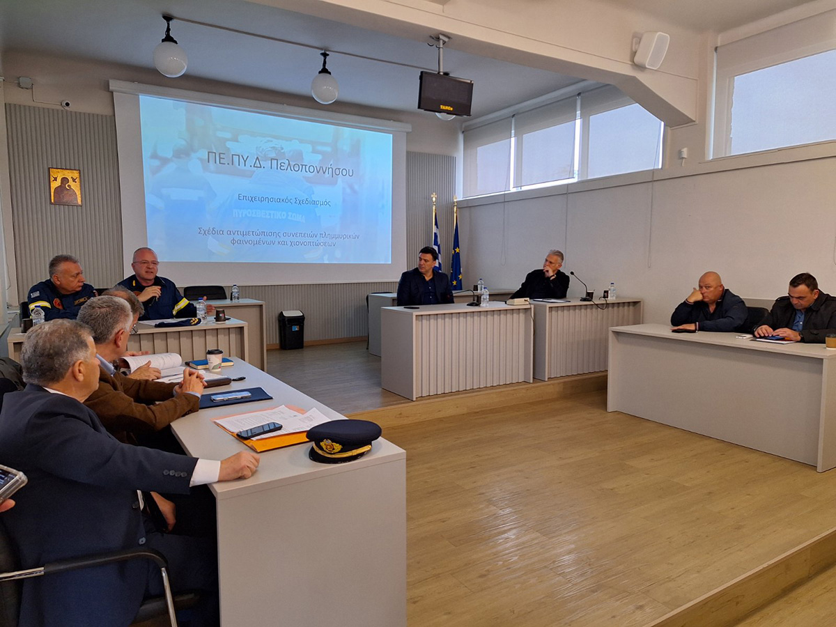 Από την πλευρά του, ο Περιφερειάρχης Δημήτρης Πτωχός υπογράμμισε ότι η Περιφέρεια Πελοποννήσου παρότι είναι μία τρωτή Περιφέρεια, βρίσκεται σε ετοιμότητα, έχοντας ήδη προχωρήσει σε σειρά προληπτικών παρεμβάσεων σε συνεργασία με τους δήμους και τις αρμόδιες υπηρεσίες. Παράλληλα, ανακοίνωσε ότι βρίσκεται σε εξέλιξη η εκπόνηση ενός master plan για την αντιπλημμυρική θωράκιση και τη διαχείριση υδάτων, το οποίο θα αποτελέσει τον «οδικό χάρτη» για την αναβάθμιση της ανθεκτικότητας της περιοχής.