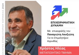 Με μεγάλη χαρά και εκτίμηση θέλω να ευχαριστήσω όλους εσάς που με τιμησατε με την ψήφο σας και με στηρίξατε στις εκλογές του Επιμελητηρίου Κορινθίας στον τομέα της μεταποίησης. Η εκλογή μου ως υποψήφιος με τον συνδυασμό του Παναγιώτη Λουζιώτη είναι για μένα μια μεγάλη ευθύνη αλλά και μια πρόκληση για να εργαστώ σκληρά για την ενίσχυση της επιχειρηματικότητας στο νόμο μας.