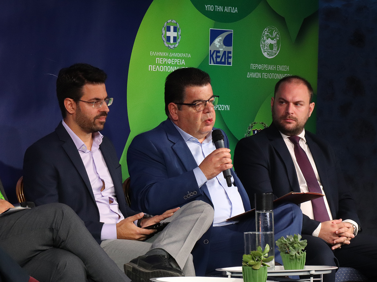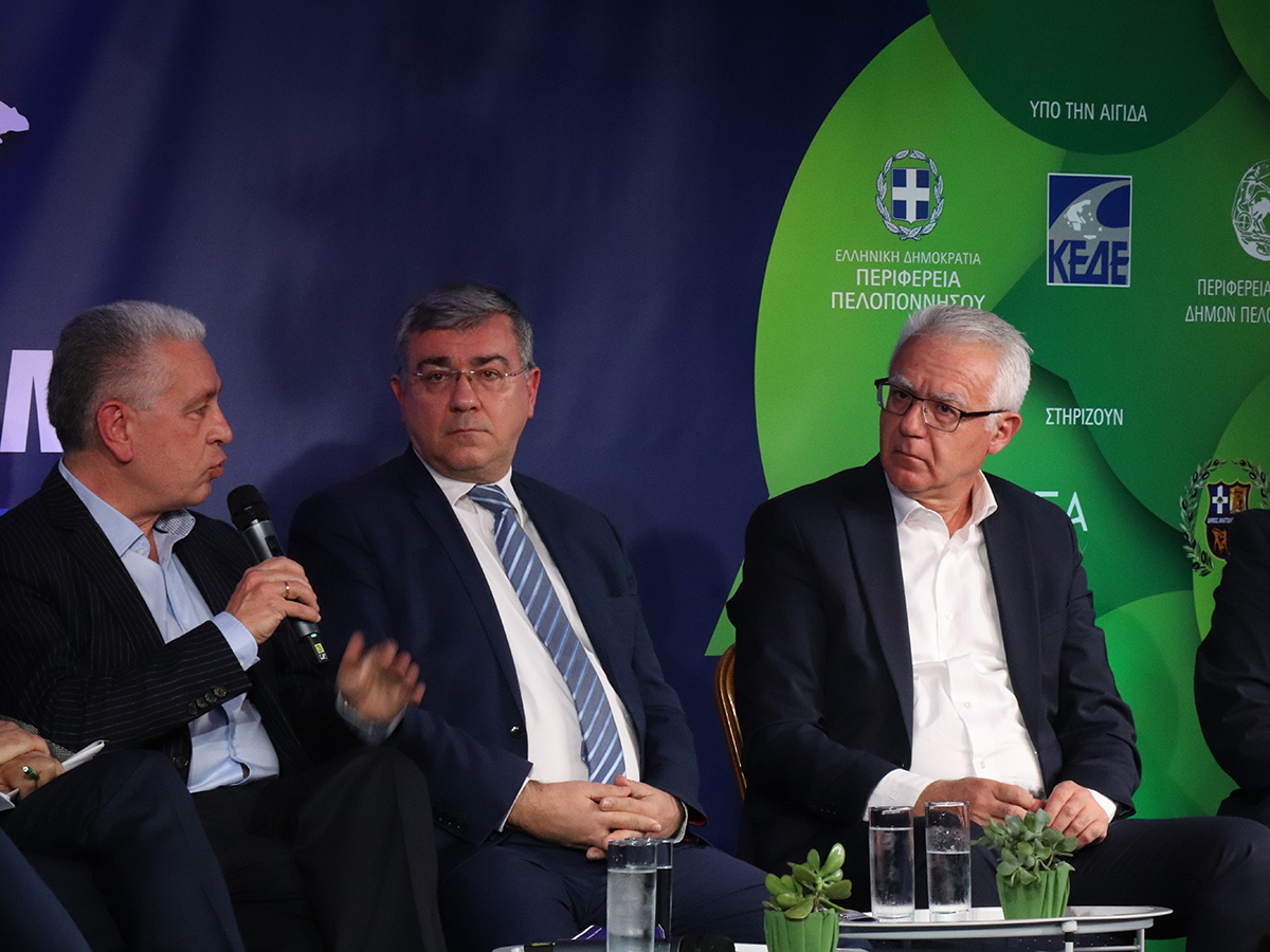 Ο Περιφερειάρχης ανέδειξε, επίσης, τις μεγάλες προκλήσεις που αντιμετωπίζει η Πελοπόννησος λόγω της κλιματικής αλλαγής, καθώς και σε όσα κάνει και σχεδιάζει η Περιφέρεια, όπως το master plan αντιπλημμυρικής προστασίας, η ολοκλήρωση υδάτινων έργων, η ενίσχυση χρήσης ανανεώσιμων πηγών ενέργειας και η υλοποίηση προγραμμάτων κατάρτισης στους τομείς της γεωργίας, της ενέργειας και του τουρισμού.