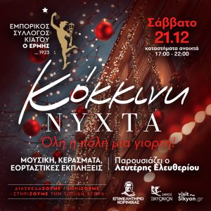 Φοράμε τα γιορτινά μας και σας περιμένουμε το Σάββατο 21 Δεκεμβρίου στο Κιάτο από τις 17:00 μέχρι τις 22:00 για μια ξεχωριστή, γιορτινή «Κόκκινη Νύχτα» γεμάτη μουσική , χορό και πολλές εκπλήξεις!!!